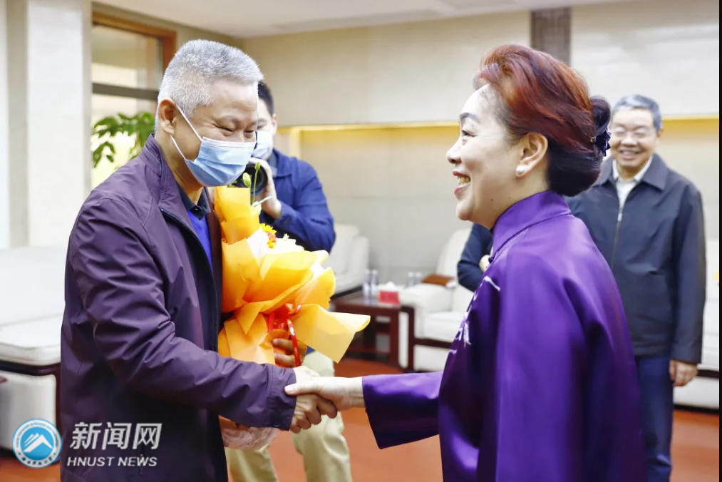 人社厅党组书记、厅长唐白玉与万步炎亲切握手